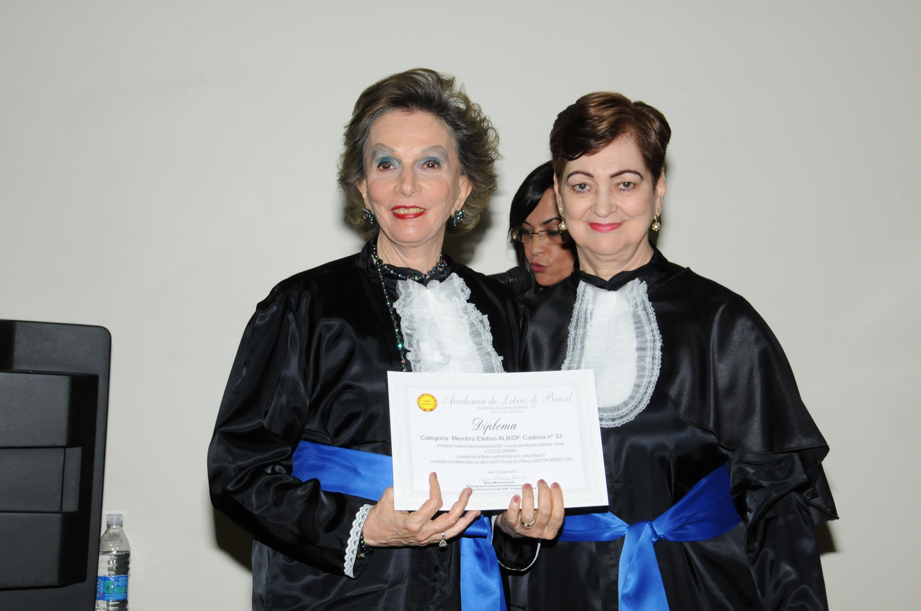 Clotilde Chaparro Rocha tomou posse na Academia de Letras do Brasil – ALB – na cadeira de Orígenes Lessa no dia 23.08.2012.