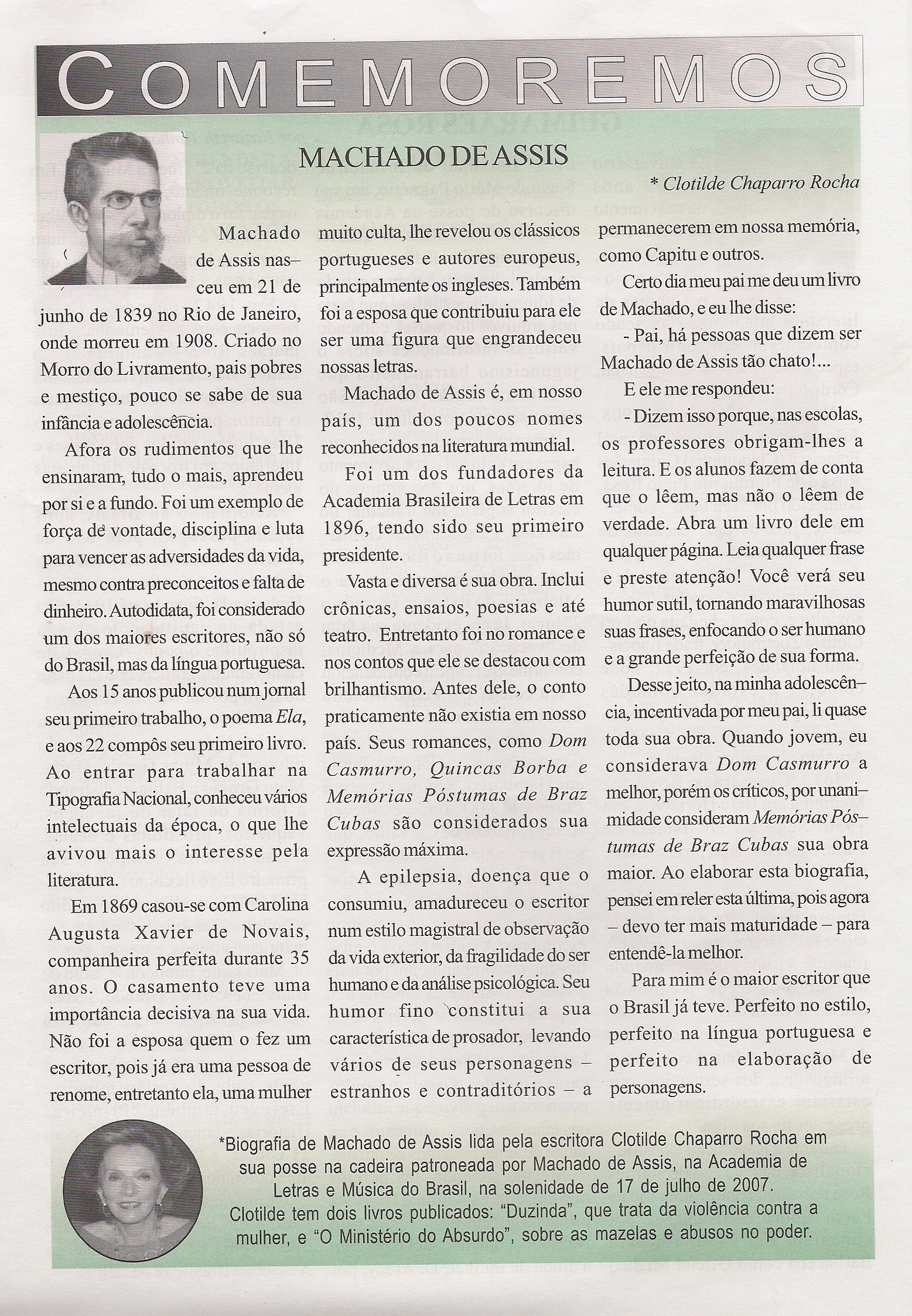 Jornais e Revistas » Comemoremos – Machado de Assis – ALMUB – Julho de 2008.