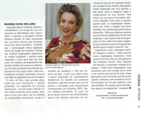 Rev. Foco julho 13 “Arrumando a casa”, matéria sôbre empregados domésticos.